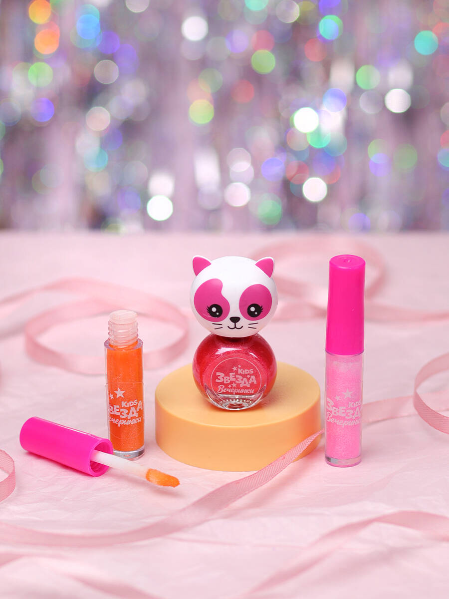 Набор детской косметики "Кошечка 8" (лак для ногтей 1шт, блеск д/губ 2шт, цвет микс) ( Арт. КС-5199)