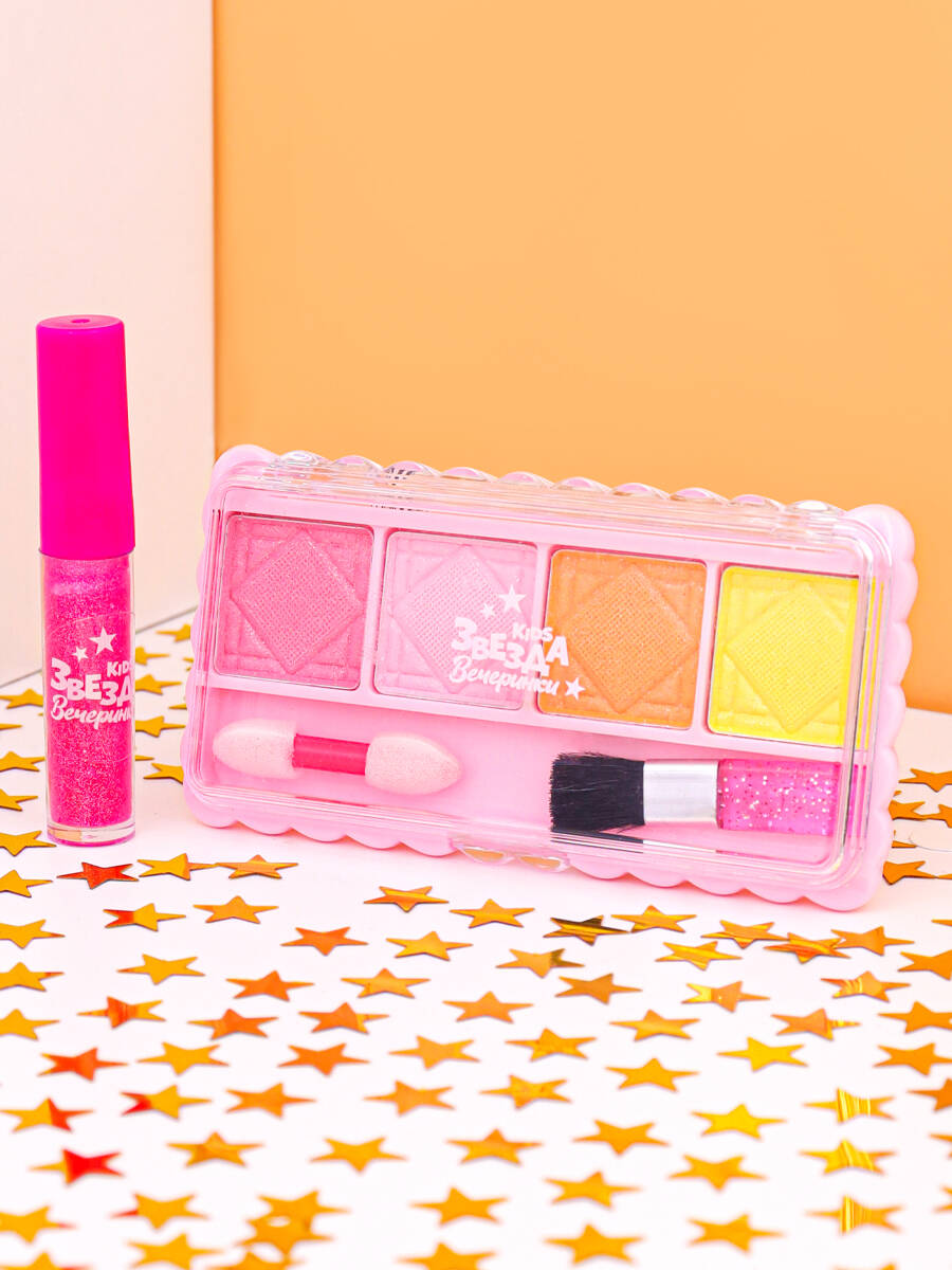 Набор детской косметики "Модная девчонка" (блеск, тени, кисть, апплик, цвет микс) ( Арт. КС-5215)