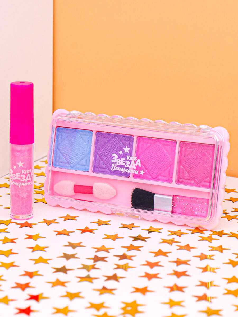 Набор детской косметики "Модная девчонка" (блеск, тени, кисть, апплик, цвет микс) ( Арт. КС-5214)