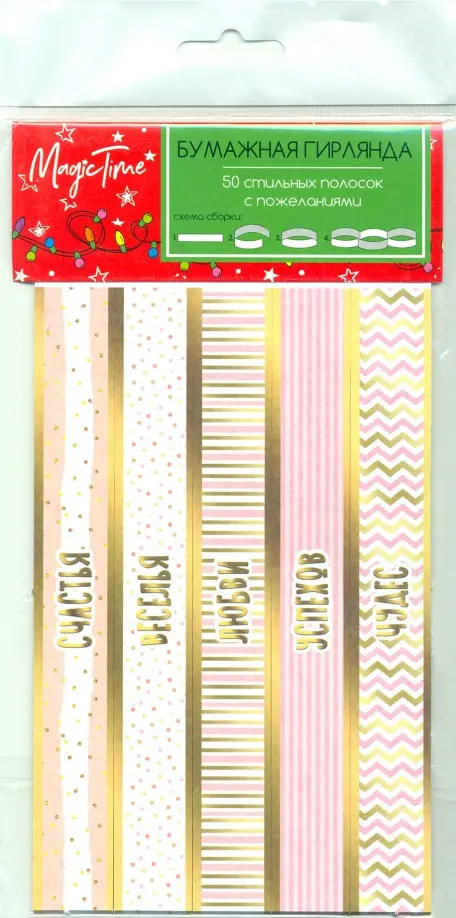 В набор входят 50 полосок с теплыми пожеланиями (16 см).