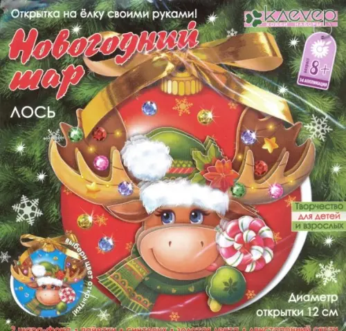 Набор для изготовления новогодней открытки Клевер "Новогодний шар. Лось", 13,5x13,5 см, арт. АБ 23-517