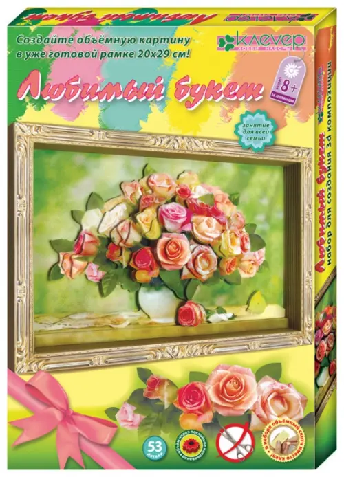 Собирать картину легко и приятно: все детали готовы и пронумерованы в порядке, в котором их надо наклеить, метки для скотча и количество скотча на одну метку указаны на обороте деталей. Нужно просто наклеить детали, слой за слоем, на фон! Рамку собирать не нужно - красочная и глубокая рамка входит в набор. Клей не нужен - в наборе дана объёмная двусторонняя клейкая лента (скотч). На обороте рамки имеются прорези, чтобы картину можно было повесить на стену. Работая с наборами серии «Букеты», ребёнок научится самостоятельно подбирать детали по их изображению и контуру и складывать трёхмерное изображение из частей, составляя перспективу. Объёмные картины - это увлекательный вид творчества для всей семьи и отличный подарок! Присоединяйтесь!