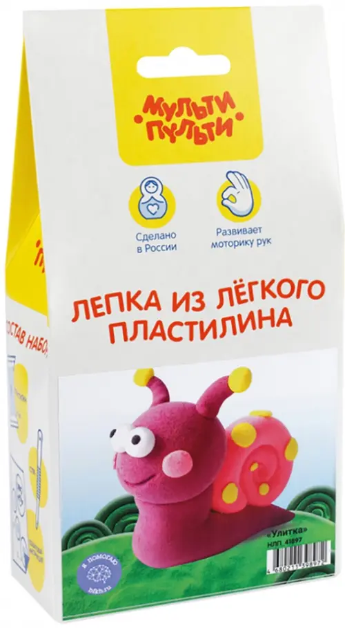 Воздушный пластилин «Мульти-Пульти» - это мягкий, пластичный и приятный материал. В результате работы с набором у вас получится дружелюбная яркая улитка. Она станет игрушкой или украшением детской комнаты.