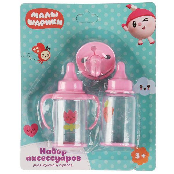 Набор для пупса МАЛЫШАРИКИ 3 предмета: поильник, соска, бутылочка, блистер КАРАПУЗ в кор.2*60шт