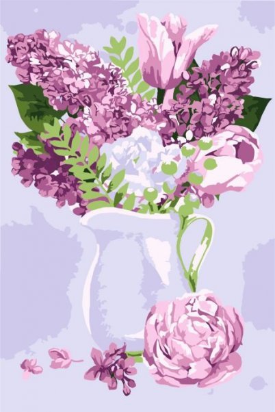 Набор для раскрашивания по номерам Цветы в кувшине, 12 цветов: краски акриловые на водной основе 12 штук, холст c контурным рисунком (нетканый материал), на подрамнике из МДФ, кисти 2 штуки, контрольный лист со схемой. / 20x30x1,6см арт.88097