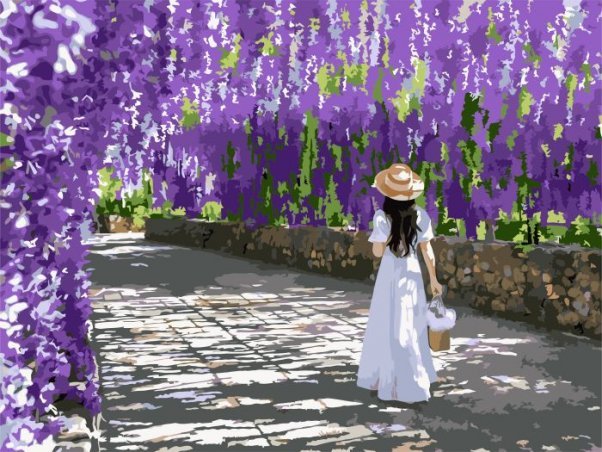Набор для раскрашивания по номерам Девушка в саду, 24 цвета: краски акриловые на водной основе 24 штуки, холст c контурным рисунком (нетканый материал), на подрамнике из МДФ, кисти 3 штуки, контрольный лист со схемой / 30x40x1,6см арт.88117