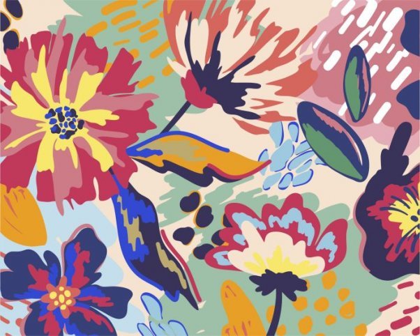 Набор для раскрашивания по номерам Яркие цветы, 24 цвета: краски акриловые на водной основе 24 штуки, холст c контурным рисунком (нетканый материал), на подрамнике из МДФ, кисти 3 штуки, контрольный лист со схемой / 40x50x1,6см арт.88125