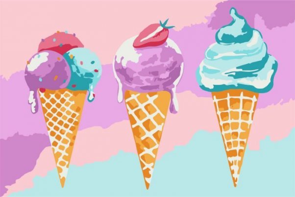 Набор для раскрашивания по номерам Мороженое в стаканчике, 12 цветов: краски акриловые на водной основе 12 штук, холст c контурным рисунком (нетканый материал), на подрамнике из МДФ, кисти 2 штуки, контрольный лист со схемой. / 20x30x1,6см арт.88099