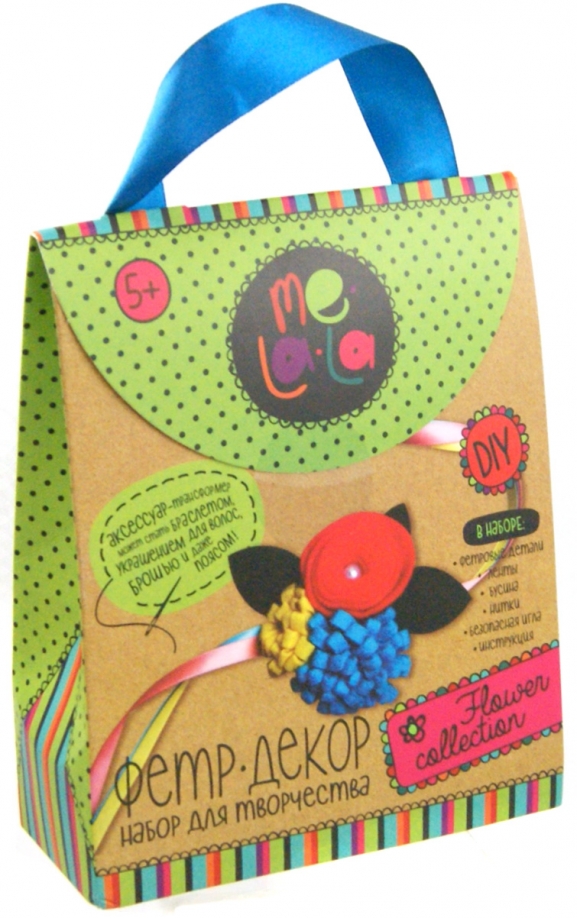 Набор для развития детского творчества. Стильный аксессуар из экологичного материала придется по душе любой маленькой моднице, а процесс его создания, несомненно, принесет удовольствие. Все фетровые детали специально перфорированы так, чтобы их было легко сшивать безопасной пластиковой иголкой. Набор способствует развитию вкуса, воображения и творческих способностей.