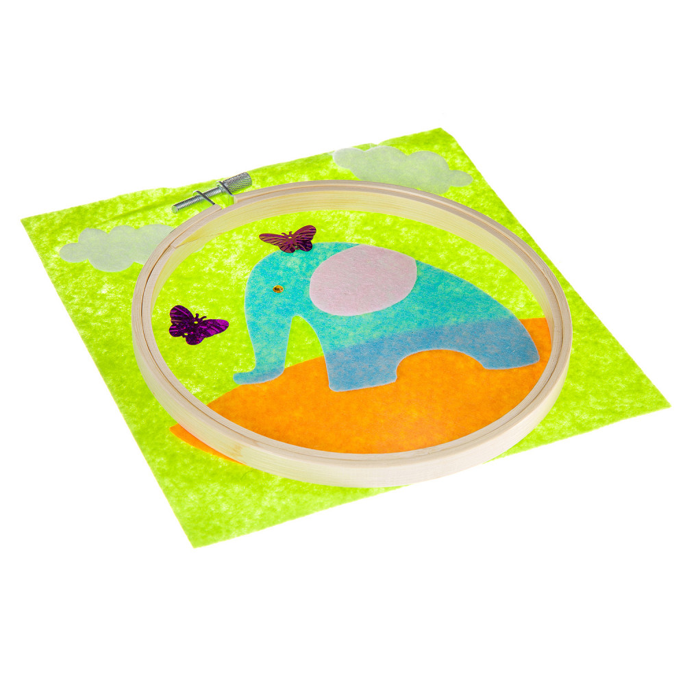 Аппликация из фетра на пяльцах. Слоник на прогулке