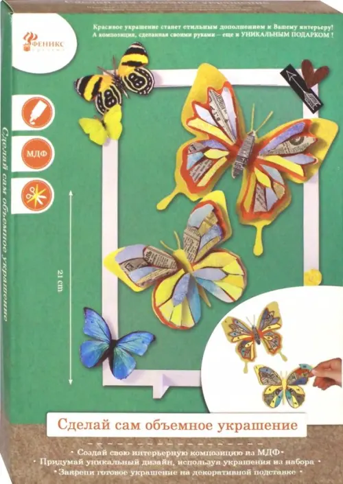 В наборе: детали из МДФ, декоративная бумага, листы из полипропилена, клей пва, кисточка из пвх, двусторонний скотч.