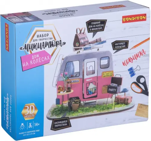 Румбокс - новый, стремительно набирающий популярность в мире, вид хобби. Он представляет собой создание трехмерного интерьера в миниатюре. Когда-то им занимались только дизайнеры, а теперь он стал доступен всем - и взрослым, и детям. Это прекрасное увлечение поможет не только интересно провести время, но и поспособствует развитию пространственного мышления, фантазии, тренировке мелкой моторики, координации и усидчивости. В составе набора имеется всё необходимое для сборки. Детали пронумерованы и разложены по пакетам. К набору прилагается иллюстрированная пошаговая инструкция. Создайте интерьер настоящего дома на колесах с потрясающей детализацией и настоящим освещением!