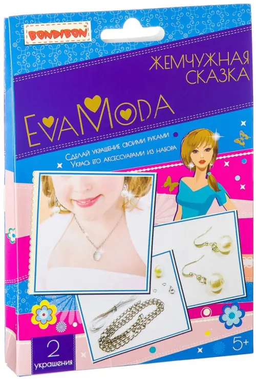 Набор для создания изящного комплекта на основе розовых жемчужинок. В нем есть инструкция по созданию украшений, жемчужинки, серебристая цепочка для кулона и пара милых сережек.