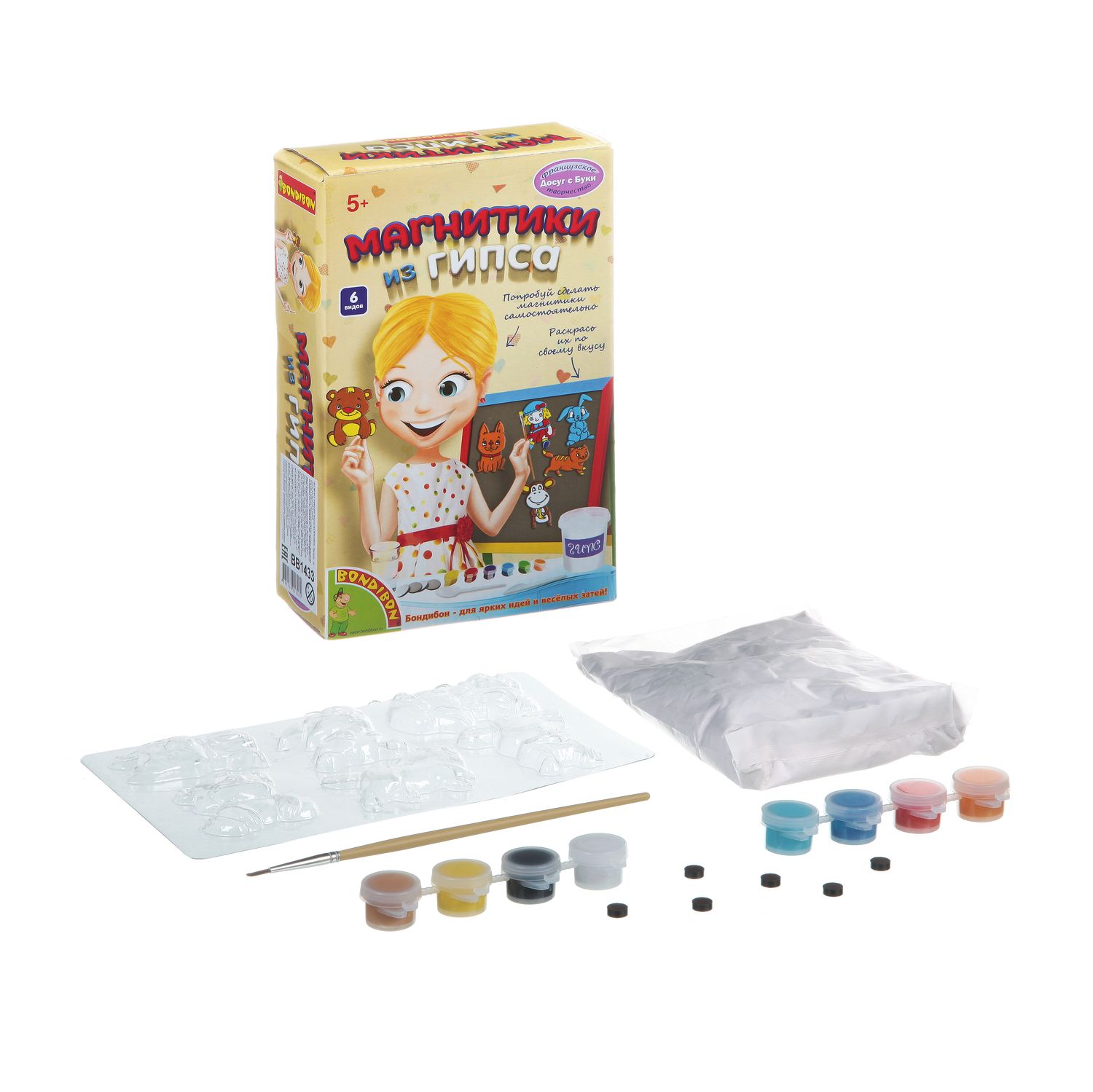 Магниты-украшения для холодильников давно стали привычными. Гораздо интереснее не просто украсить холодильник покупными магнитами, но сделать их самостоятельно. Набор «Магнитики из гипса» подарит каждому ребенку возможность сделать магниты и раскрасить их по собственному вкусу! Этот веселый творческий набор - прекрасная возможность проявить настоящий дизайнерский талант! Используя гипс и форму для отливки, тебе под силу создать магнитики самых необычных форм!