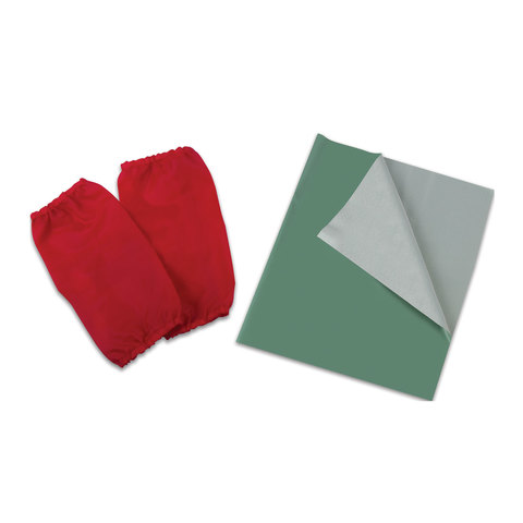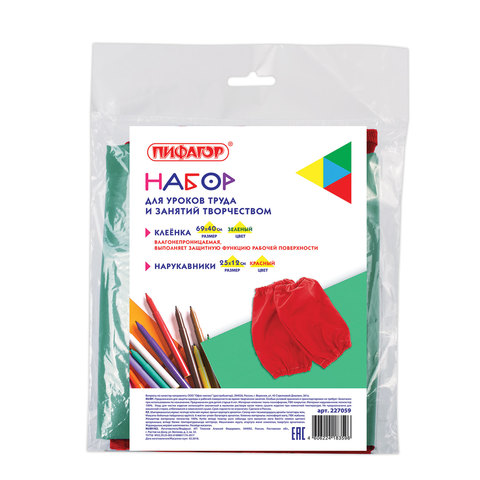 Набор для уроков труда "Пифагор": клеенка ПВХ (зеленая) размером 69х40 см, нарукавники (красные)