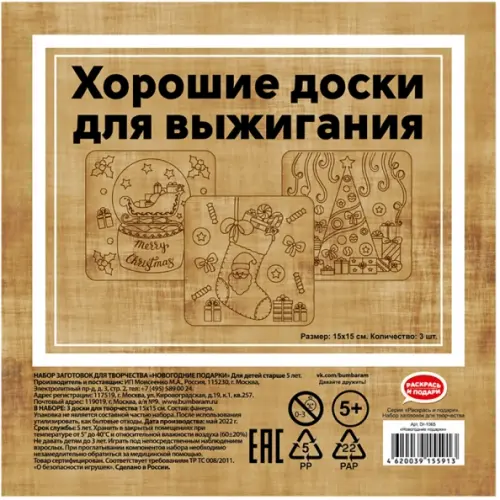 Набор досок для выжигания Новогодние подарки, 3 штуки