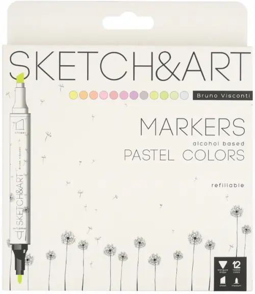 Высококачественные профессиональные маркеры "SKETCH&ART" для рисования, набросков, дизайнерских работ. В наборе 12 маркеров пастельных цветов.