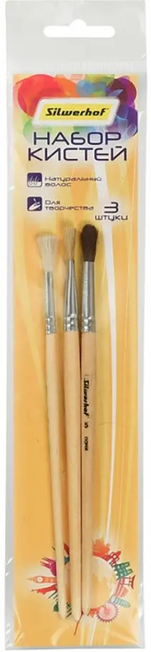 В наборе 3 штуки: пони круглая №5, коза круглая №3, щетина плоская №8.