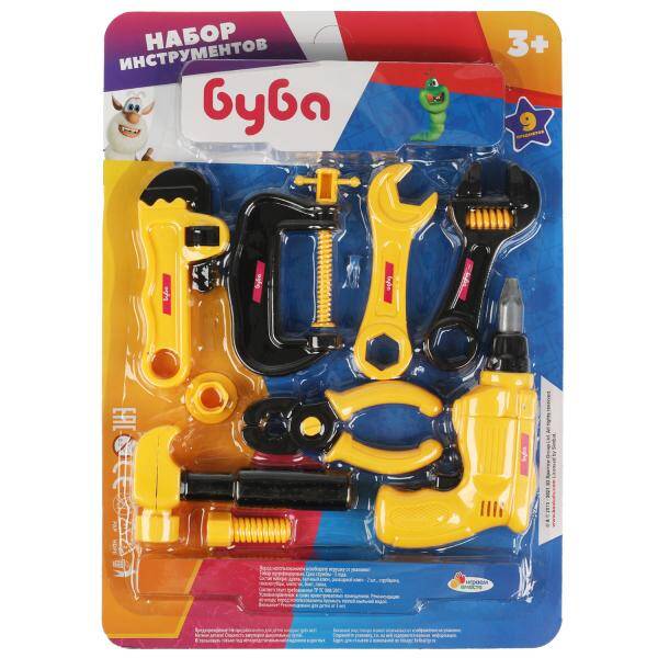 Набор инструментов "Буба" ТМ "Играем вместе" порадует маленького умельца: - яркий дизайн - любимые герои - детально проработанный внешний вид инструментов В комплекте: - 9 предметов - молоток - дрель - гаечный ключ - разводной ключ - строительный нож и др. С этим набором инструментов юный мастер сможет починить что угодно. Он придумает множество увлекательных игр и будет выполнять различные ремонтные работы, подражая взрослым мужчинам. Игра с набором инструментов ТМ "Играем вместе" развивает: - моторику - воображение - внимание - моторику - пространственное мышление Размер упаковки: 26,5 х 21,5 х 4 см. Материал: пластмасса. Рекомендовано детям от 3-х лет.| Издательство | С-Маркет ООО |