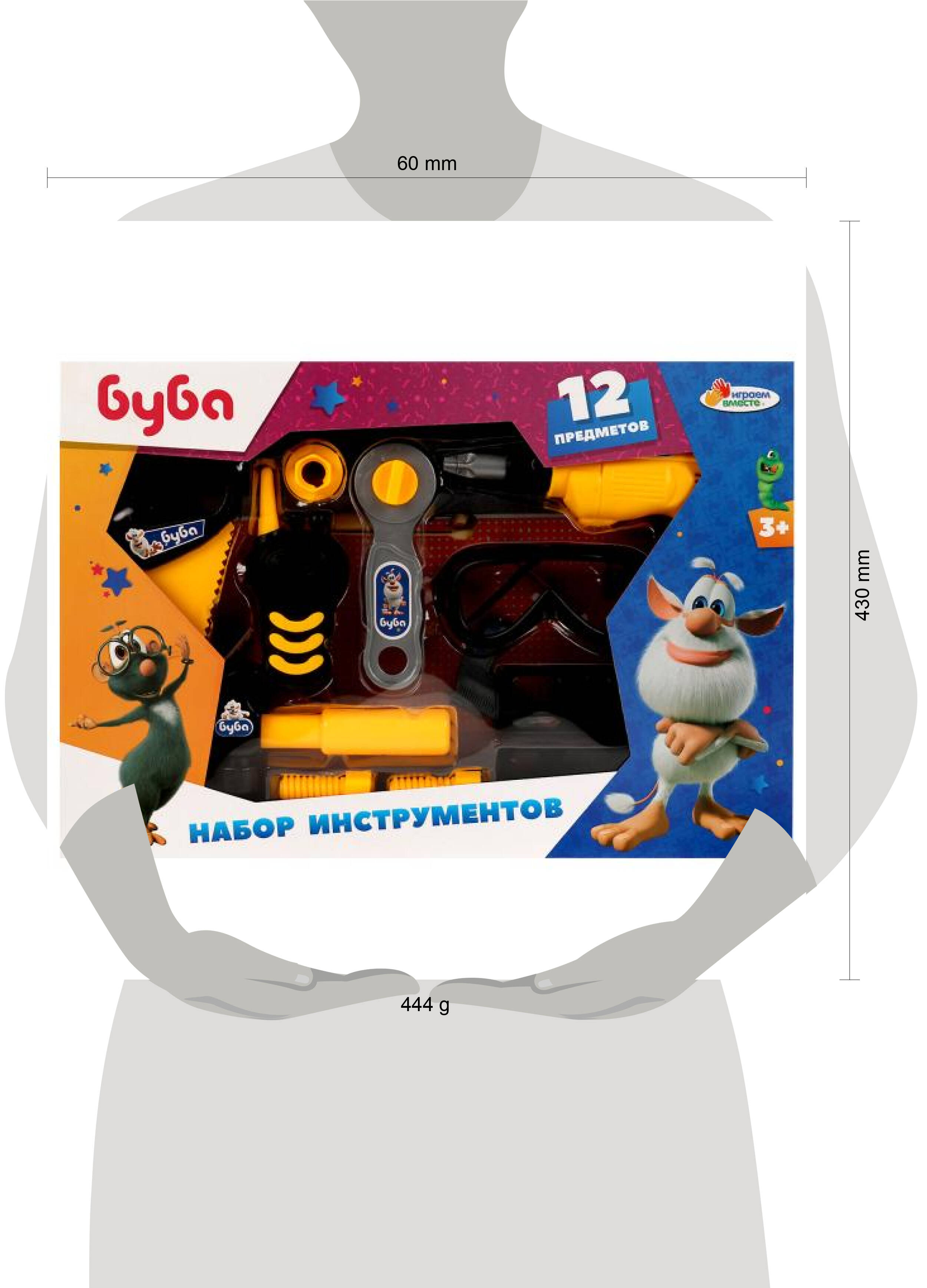 Набор инструментов "Буба" ТМ "Играем вместе" - отличный подарок для юных мастеров: - реалистичный дизайн - упаковка с любимыми героями В комплекте: - 12 предметов - дрель - молоток - защитные очки - пила и др. В наборе есть все необходимые инструменты, чтобы почувствовать себя настоящим умельцем, получить массу новых эмоций и простор для фантазии в играх. Каждый предмет детально проработан и похож на оригинал, поэтому ребёнок сможет выполнять различные ремонтные работы, подражая взрослым. Игра с набором инструментов ТМ "Играем вместе" расширяет кругозор и развивает: - координацию движений - внимание - воображение - мелкую моторику - логическое мышление Размер упаковки: 43 х 30 х 5,5 см. Материал: пластмасса. Рекомендовано детям от 3-х лет.