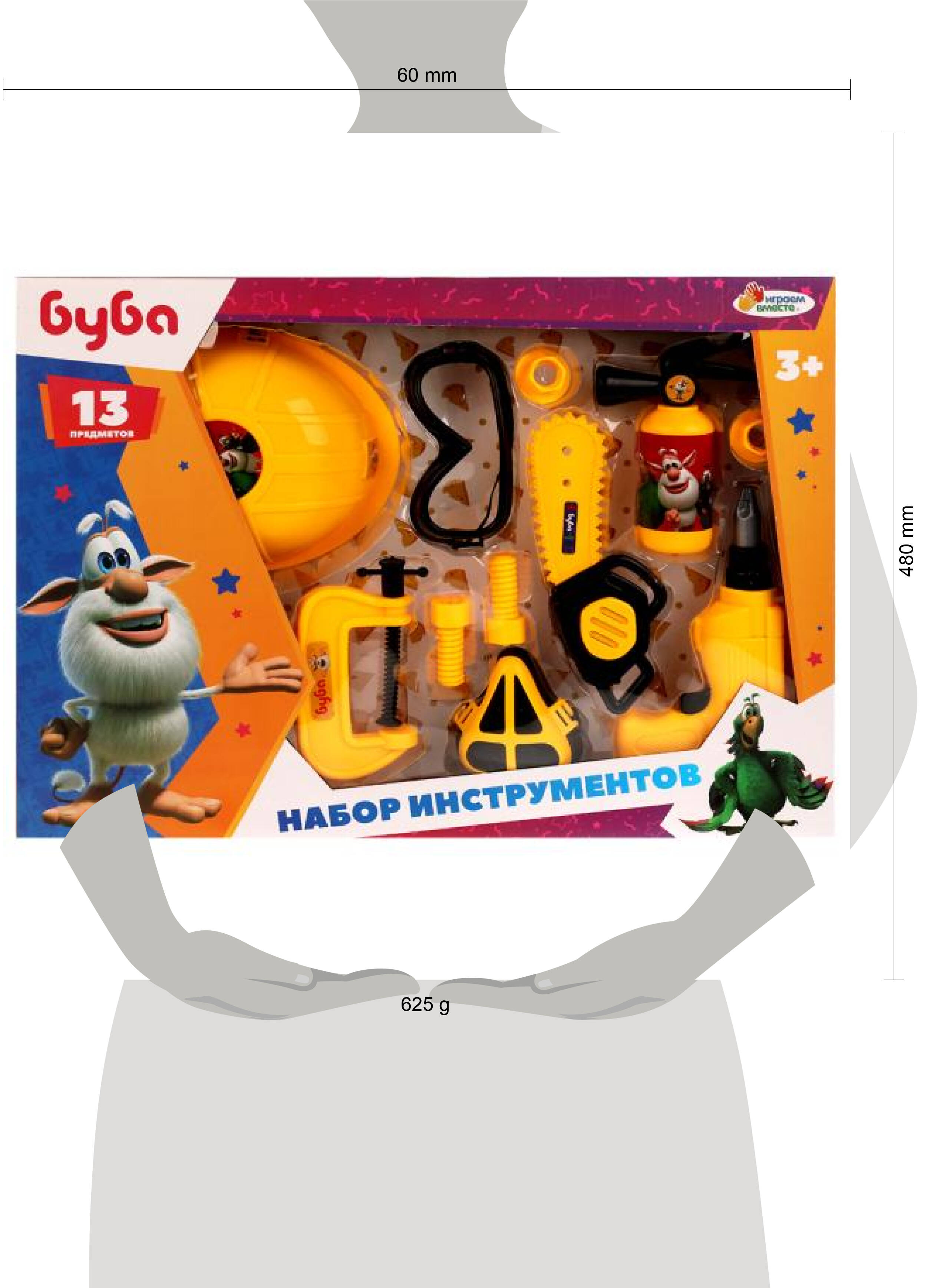 Набор инструментов "Буба" ТМ "Играем вместе" - отличный подарок для юных мастеров: - реалистичный дизайн - упаковка с любимыми героями В комплекте: - 13 предметов - дрель - каска - защитные очки - пила и др. В наборе есть все необходимые инструменты, чтобы почувствовать себя настоящим умельцем, получить массу новых эмоций и простор для фантазии в играх. Каждый предмет детально проработан и похож на оригинал, поэтому ребёнок сможет выполнять различные ремонтные работы, подражая взрослым. Игра с набором инструментов ТМ "Играем вместе" расширяет кругозор и развивает: - координацию движений - внимание - воображение - мелкую моторику - логическое мышление Размер упаковки: 48 х 35 х 6 см. Материал: пластмасса. Рекомендовано детям от 3-х лет.| Издательство | С-Маркет ООО |
