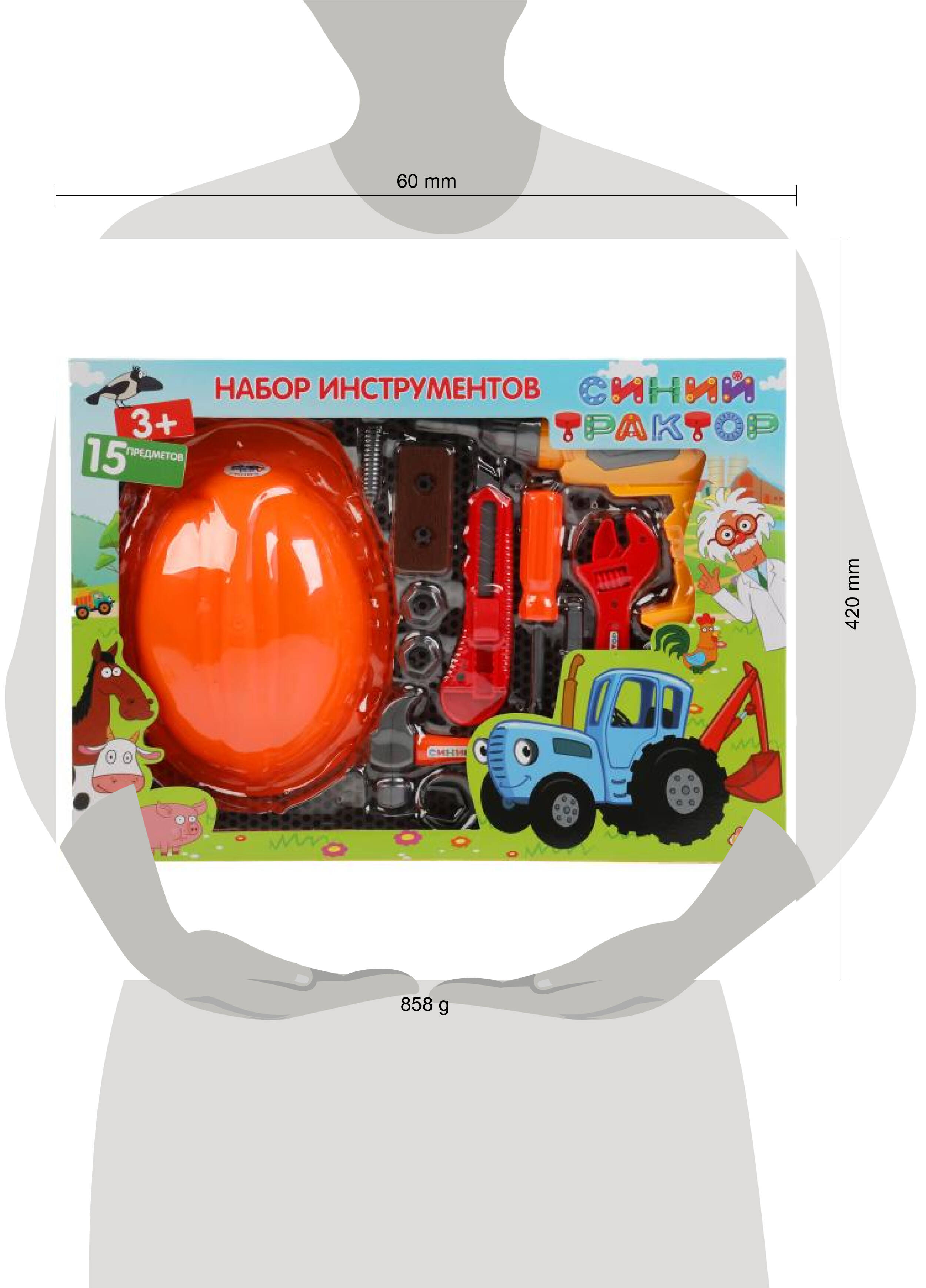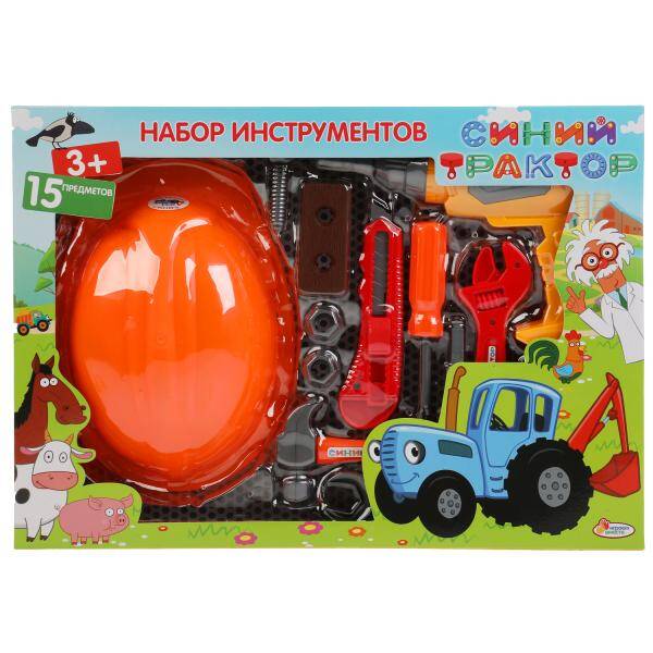 Набор инструментов "Синий трактор" ТМ "Играем вместе" порадует маленького умельца: - яркий дизайн - любимые герои - детально проработанный внешний вид инструментов В комплекте 15 предметов: - молоток - резак - гаечный ключ - отвёртка и др. С этим набором инструментов юный мастер сможет починить что угодно. Он придумает множество увлекательных игр и будет выполнять различные ремонтные работы, подражая взрослым мужчинам. Игра с набором инструментов ТМ "Играем вместе" развивает: - моторику - воображение - внимание - моторику - пространственное мышление Размер упаковки: 20 х 7 х 3 см. Материал: пластмасса. Рекомендовано детям от 3-х лет.
