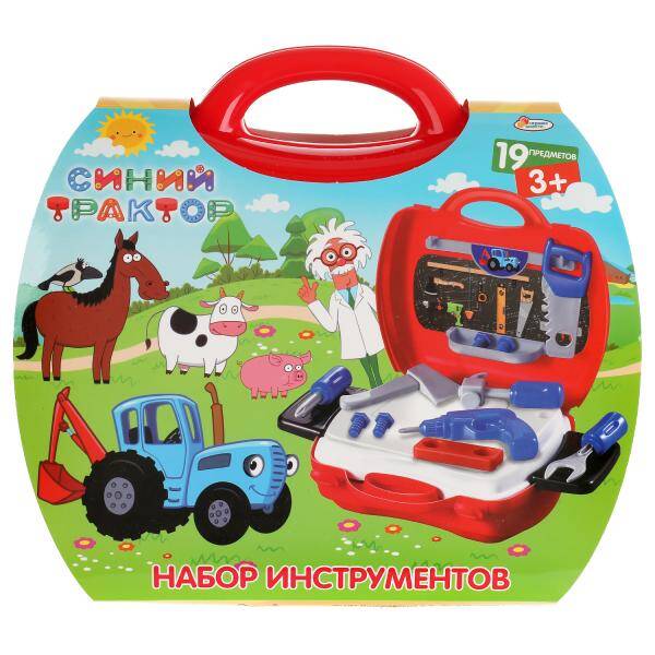 Набор инструментов "Синий трактор" ТМ "Играем вместе" порадует маленького умельца: - яркий дизайн - любимые герои - детально проработанный внешний вид инструментов - удобный чемоданчик для хранения В комплекте 19 предметов: - молоток - топор - гаечный ключ - пила - отвёртка и др. С этим набором инструментов юный мастер сможет починить что угодно. Он придумает множество увлекательных игр и будет выполнять различные ремонтные работы, подражая взрослым мужчинам. Для хранения и переноски предметов предусмотрен удобный пластиковый чемодан с ручкой. Игра с набором инструментов ТМ "Играем вместе" развивает: - моторику - воображение - внимание - моторику - пространственное мышление Размер упаковки: 24 х 10,5 х 24 см. Материал: пластмасса. Рекомендовано детям от 3-х лет.
