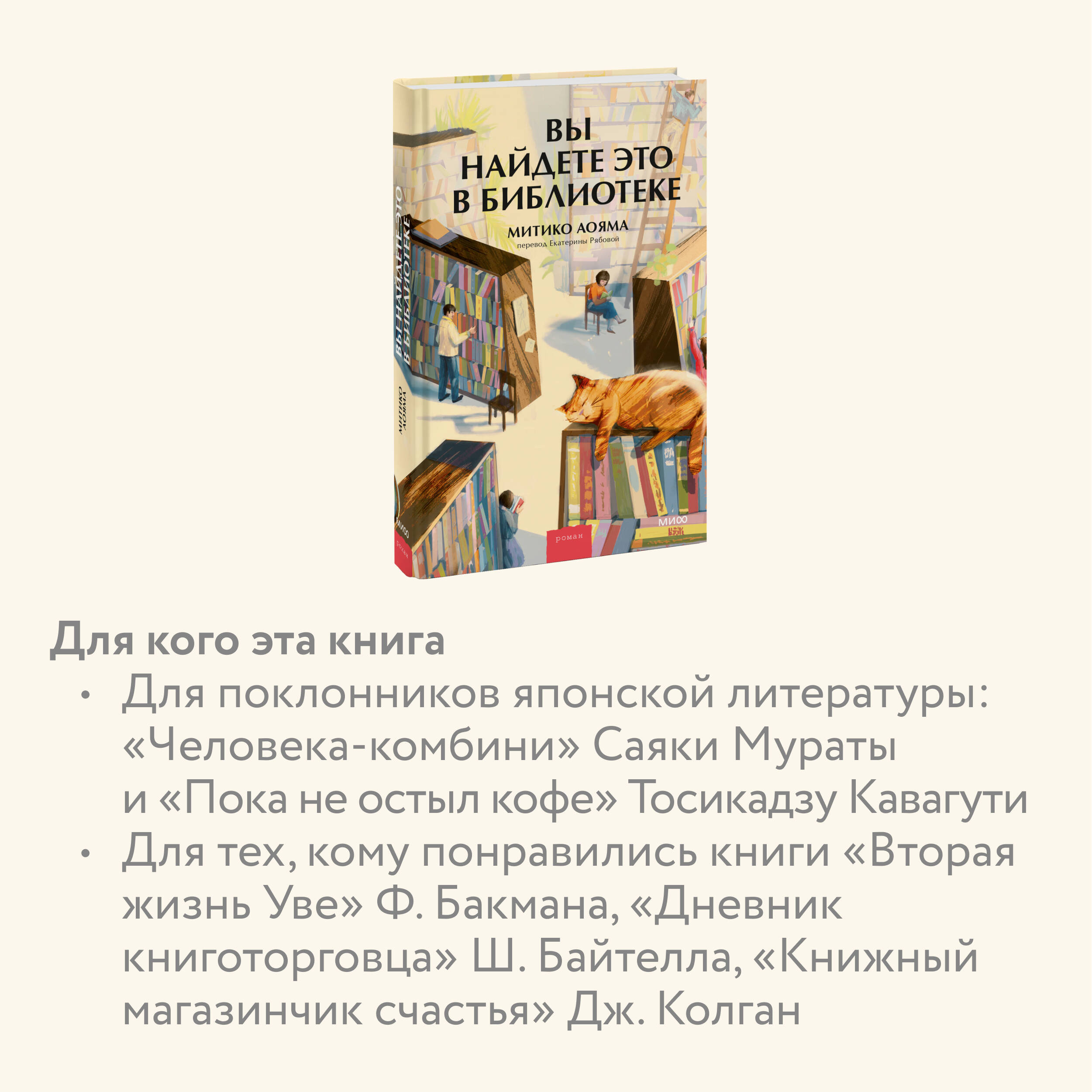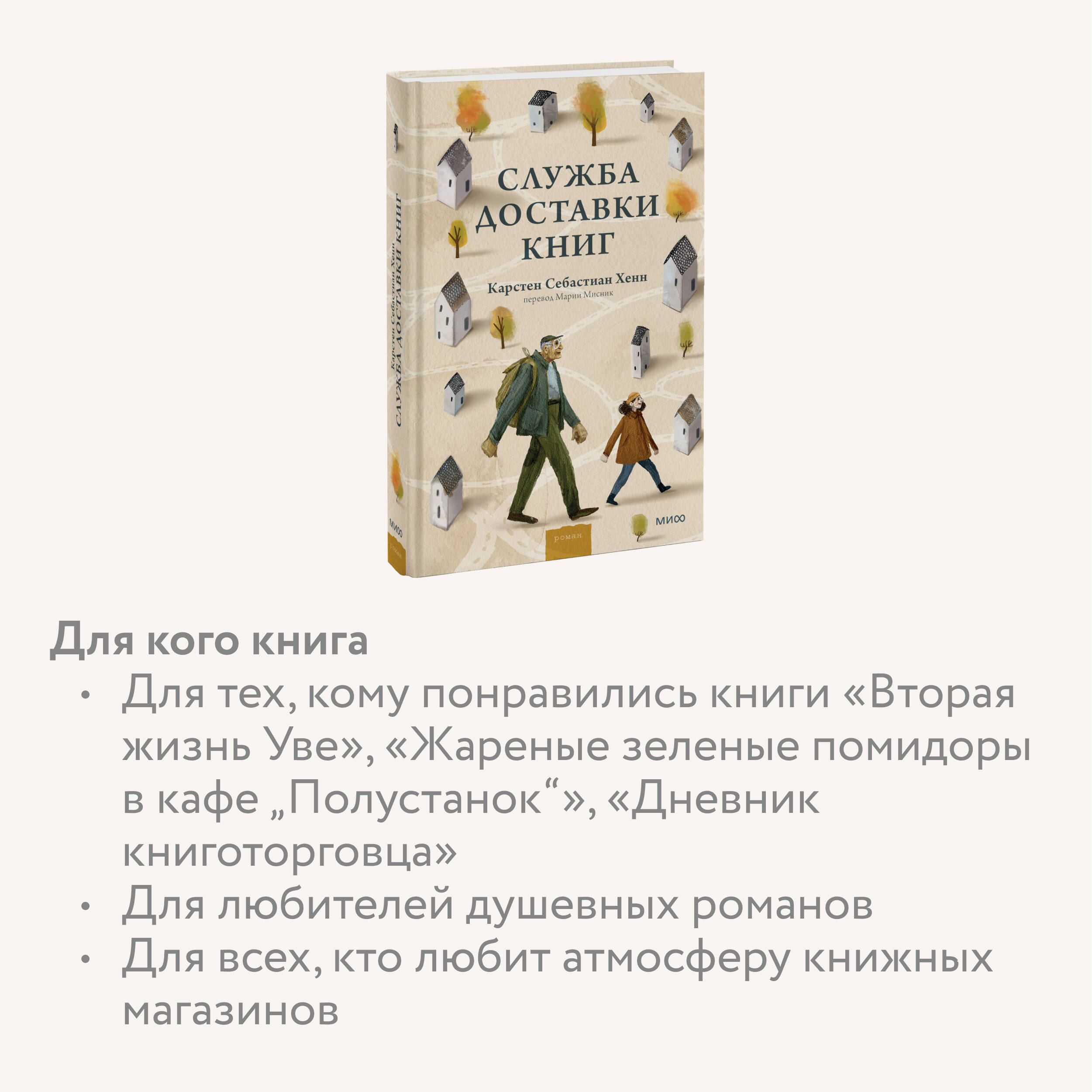 Служба доставки книг: Каждый день Карл Кольхофф, пожилой продавец из книжного магазина, относит книги покупателям на дом. Это особенные покупатели, для которых Карл выбирает особенные книги. Каждого из своих клиентов Карл называет именем героя из книги (Геркулес, Фауст, Эффи и мистер Дарси) и каждого регулярно навещает, совершая книжную прогулку по одному и тому же маршруту. Но однажды к нему присоединяется девочка, которая нарушает ритуал и буквально врывается в жизнь Карла и его покупателей. Это необыкновенная история о дружбе и взаимопонимании, о книгах, книгоходцах и путях, по которым водит нас жизнь. Вы найдете это в библиотеке: "Вы что-то искали?" - вопрос, который загадочный библиотекарь Саюри Комати задает всем, кто приходит к ней за книгами. Кроме списка литературы, каждый из пяти посетителей получает возможность изменить свою жизнь к лучшему: начать гордиться своими успехами и заботиться о себе, перестать искать одобрения окружающих, научиться ценить своих близких и доверять миру. Истории главных героев покажут, что ответы на все вопросы можно найти в библиотеке, а какой бы безвыходной ни казалась ситуация, с ней все еще можно справиться