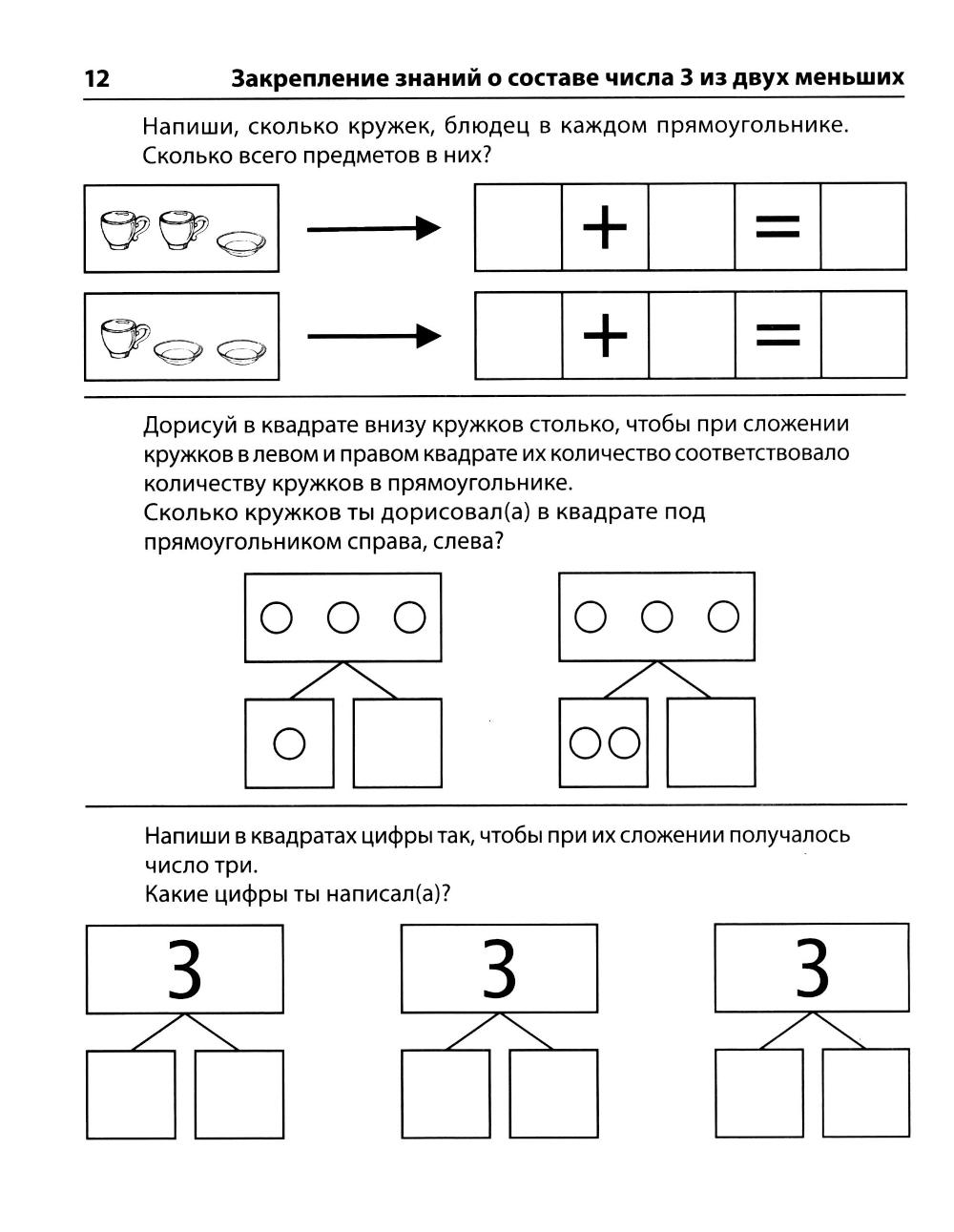 Комплект из 10 одинаковых тетрадей. Предложенные в тетради «Я составляю числа» задания направлены на составление числа из двух меньших. Это основа, на базе которой будет осуществляться дальнейшее обучение ребёнка действиям с многозначными числами. Учебно-игровые задачи расположены в определённой последовательности, что способствуют лучшему усвоению этой программной задачи. Первые задания направлены на выявление уровня готовности. Затем предлагаются задания на разложение числа на два меньших, составление числа из двух меньших, нахождение и установление несоответствия между двумя числами. Все задачи решаются с помощью практических заданий (раскрась, соедини, дорисуй, отгадай). Ребёнок от действий с числовыми совокупностями переходит в знаковую систему языка, что способствует развитию его математических способностей. У ребёнка формируются предпосылки учебной деятельности (понимание учебной задачи, самостоятельное решение, формирование навыка самоконтроля и самооценки).| Издательство | Творческий центр Сфера |