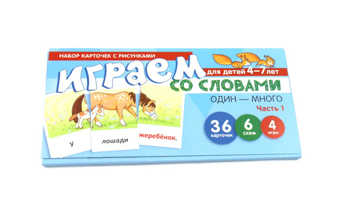 Аннотация: Набор карточек с рисунками. Играем со словами: один - много для детей 4-7 лет. Ч. 1-2. Комплект