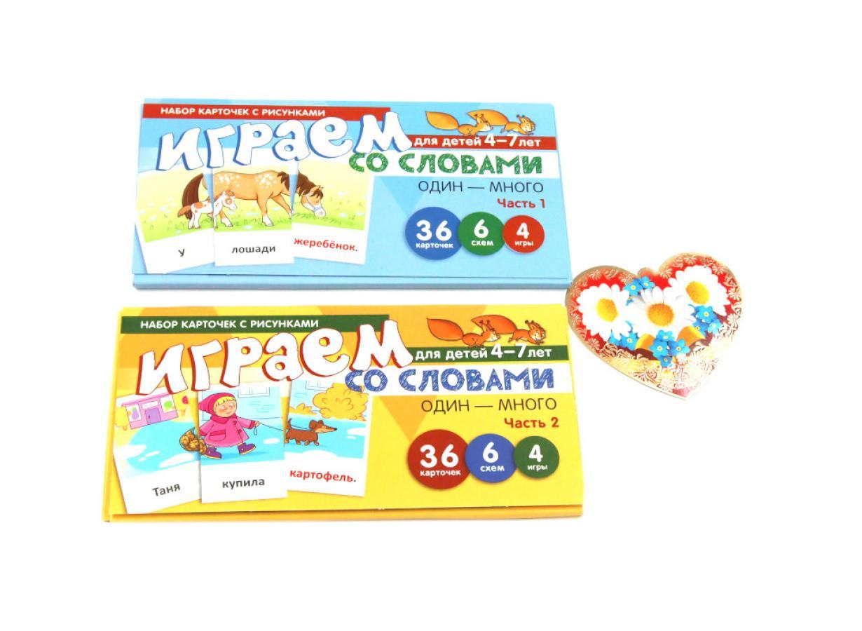 Набор карточек с рисунками. Играем со словами: один - много для детей 4-7 лет. Ч. 1-2. Комплект