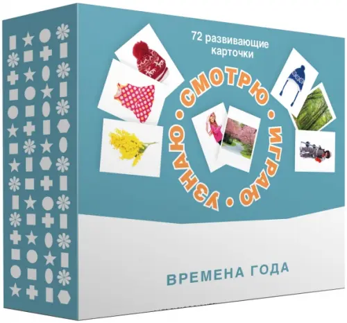 Детям часто бывает сложно освоить абстрактное понятие времени года. Один из наиболее простых и эффективных способов - это наглядные развивающие карточки. Набор состоит из 72 карточек с фотографиями, которые помогут ребёнку научиться распознавать и различать времена года. На картинках изображены признаки, занятия, праздники, погода, одежда и обувь, соответствующие каждому времени года. Показывайте ребёнку картинки, называя к какому времени года они относятся и почему; раскладывайте карточки по сезонам и по категориям. В наборе представлены несколько тематических игр, правила которых приведены на отдельной карточке. Найдите свой вариант игры, который понравится вам и вашему ребёнку!