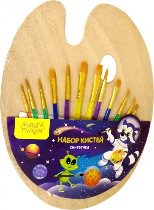 Кисти из набора с палитрой «Мульти-Пульти» предназначены для детей с начальным и средним уровнем подготовки. В набор входят палитра и 12 кистей: 2 штуки круглые (№ 3), 4 штуки круглые (№6), 2 штуки круглые (№ 10), 2 штуки плоские (№ 8) и 2 штуки плоские (№ 12).