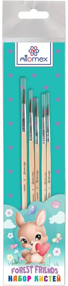 Набор кистей "Attomex. Forest Friends" 05 шт (пони № 1, 2, 3, 4, 5) деревянная ручка, в пластиковом блистере