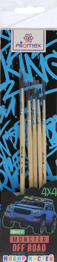 Набор кистей "Attomex. Offroad Monster" 05 шт (пони № 1, 2, 3, 4, 5) деревянная ручка, в пластиковом блистере