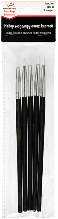 Набор из 5 силиконовых кистей разной формы (круглые, заостреные). Идеально подходят для лепки и моделирования дизайнов.