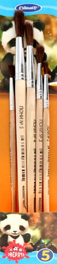 Набор кистей для рисования из натурального волоса. Черенки кистей с закругленным концом. Изготовлены из качественной древесины. Нержавеющая металлическая обойма без шва. Кисть хорошго держит форму и отлично подходит для детского творчества. Прозрачная упаковка с европодвесом.
