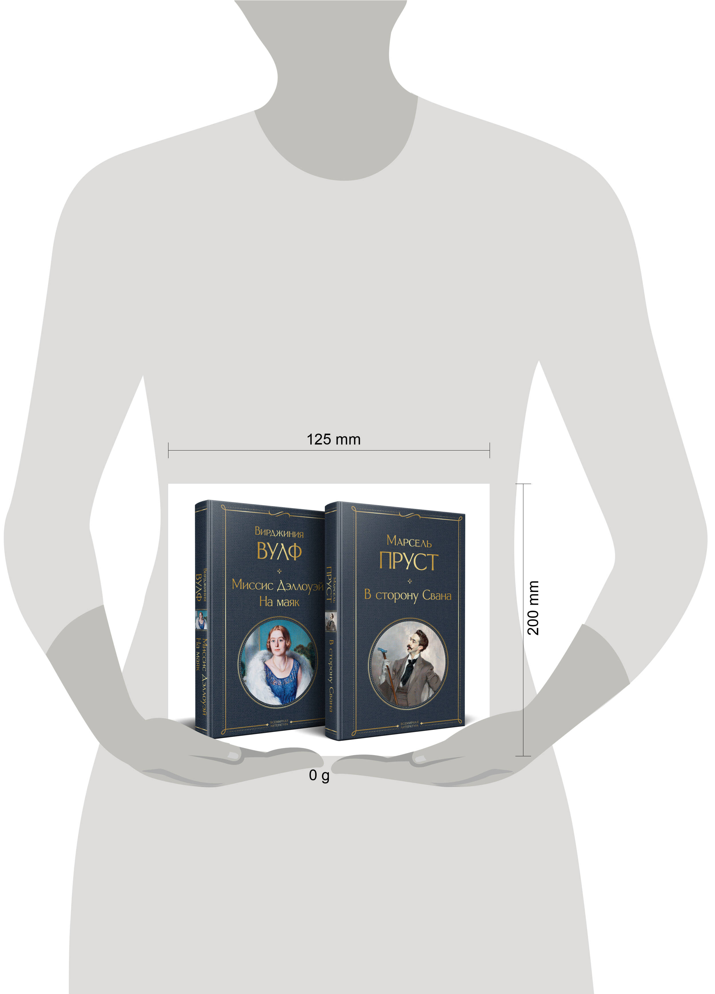 В комплект входят 2 книги: «В сторону Свана» Марселя Пруста и «Миссис Дэллоуэй. На маяк» Вирджинии Вулф, - двух признанных мастеров потока сознания. «В сторону Свана» - это первая книга семитомного цикла «В поисках утраченного времени», написанного знаменитым Марселем Прустом. Книга рассказывает историю зрелого аристократа Свана. Переживая кризис среднего возраста, он погружается в воспоминания о детстве, юности и первой любви. «В сторону Свана» - не только проникновенное исследование внутреннего мира человека, но и изящный портрет французского общества на рубеже XIX и XX веков. «Миссис Дэллоуэй». Кларисса Дэллоуэй, светская дама пятидесяти с небольшим лет, готовится к приему, который организует у себя дома. Утром она выходит из дома за цветами, она их очень любит, надо обязательно украсить ими дом к вечеру. Гуляя по Лондону, она вспоминает свою юность, первую любовь. В другом районе Лондона Септимус Уоррен Смит, ветеран Первой мировой войны, страдающий от контузии, идет со своей женой Лукрецией на прием к психиатру. День Смита переплетается с днем Клариссы и ее друзей, их жизни сходятся воедино, когда вечеринка достигает своего апогея. Узнав о трагедии со Смитом, Кларисса переосмысливает свою жизнь и отношение к смерти. «На маяк» - книга категорически необычная. Два дня, разделенные десятилетним промежутком времени. Изображенные идеи, настроения и духовный опыт. Память, с помощью которой постепенно и незаметно в этот тонкий и изящный роман входит большая жизнь. Таково самое знаменитое произведение Вирджинии Вулф. На его страницах большая семьи Рэмзи, проводя лето на острове Скай, мечтает отправиться к маяку, который виден с их берега. Ежедневно миссис Рэмзи сообщает, что отец отвезет их туда на следующий день. Однако поездка все откладывается и откладывается. Описав эту историю, Вулф сумела нарисовать причудливый объемный рисунок человеческих взаимоотношений и рассказать, как и что думают женщины и мужчины, пока их никто не слышит.