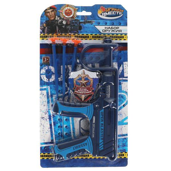 Аннотация: Набор оружия ПОЛИЦИЯ автомат с присосками, блист.19*36*4см ИГРАЕМ ВМЕСТЕ в кор.2*60шт