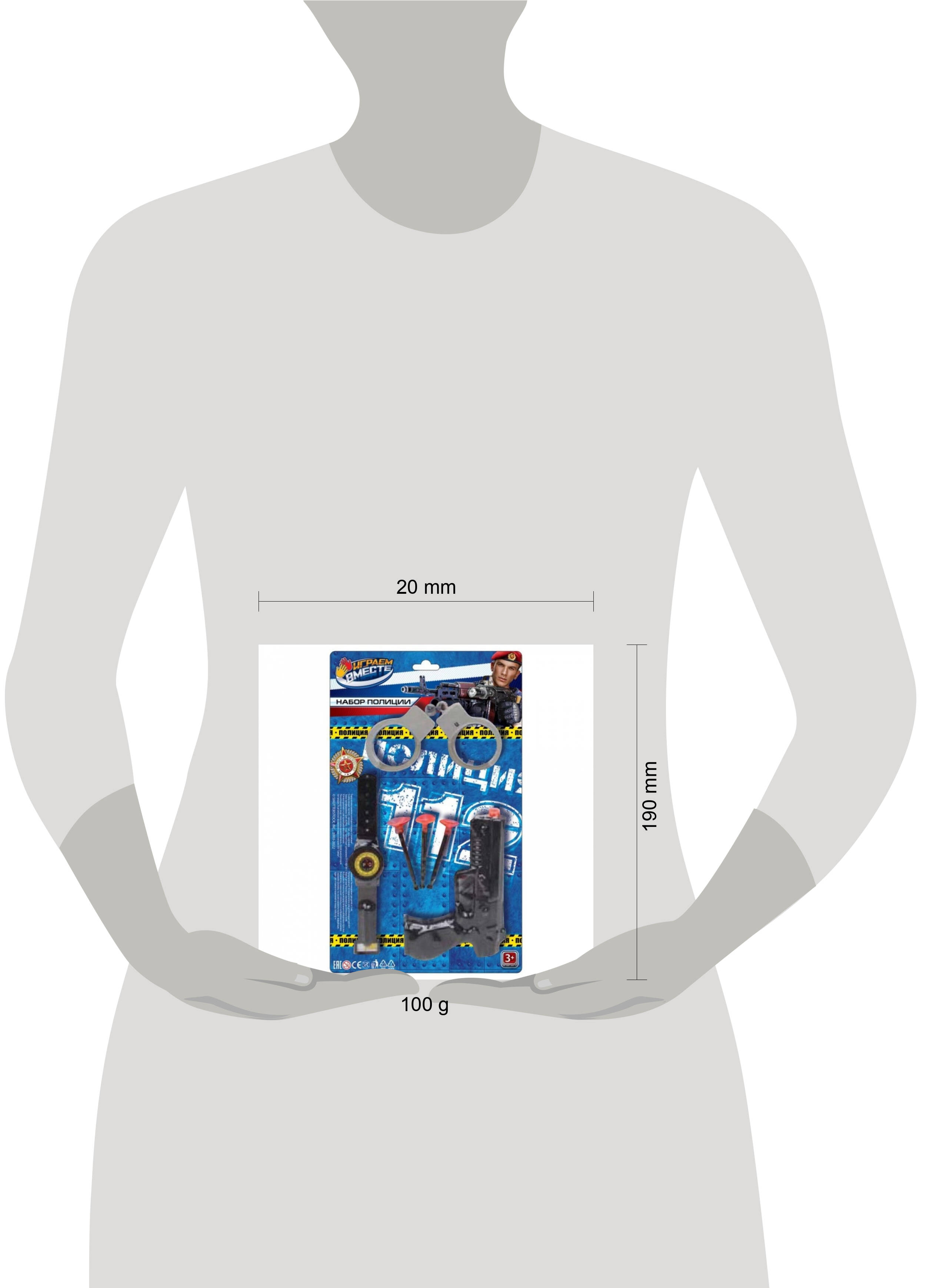 Игровой набор "Полиция" ТМ "Играем вместе" станет прекрасным подарком для юных защитников правопорядка: - реалистичный дизайн - удобная рукоять В комплекте: - пистолет - 3 пули на присосках - часы - наручники С таким реалистичным игровым набором маленький герой будет придумывать увлекательные спецзадания, защищать мир и стоять на страже порядка. Подойдёт для активных игр на воздухе и в помещении. Игра с набором ТМ "Играем вместе" развивает: - воображение - внимание - моторику Размер: 16 х 13 х 12 см. Материал: пластмасса. Рекомендовано детям от 3-х лет.| Издательство | С-Маркет ООО |
