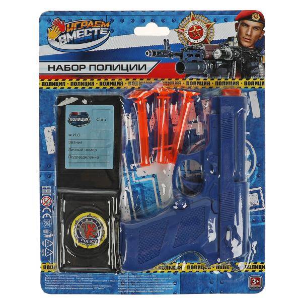 Аннотация: Набор оружия ПОЛИЦИЯ пистолет с присосками, блист.21*19*2,5см ИГРАЕМ ВМЕСТЕ в кор.2*180шт