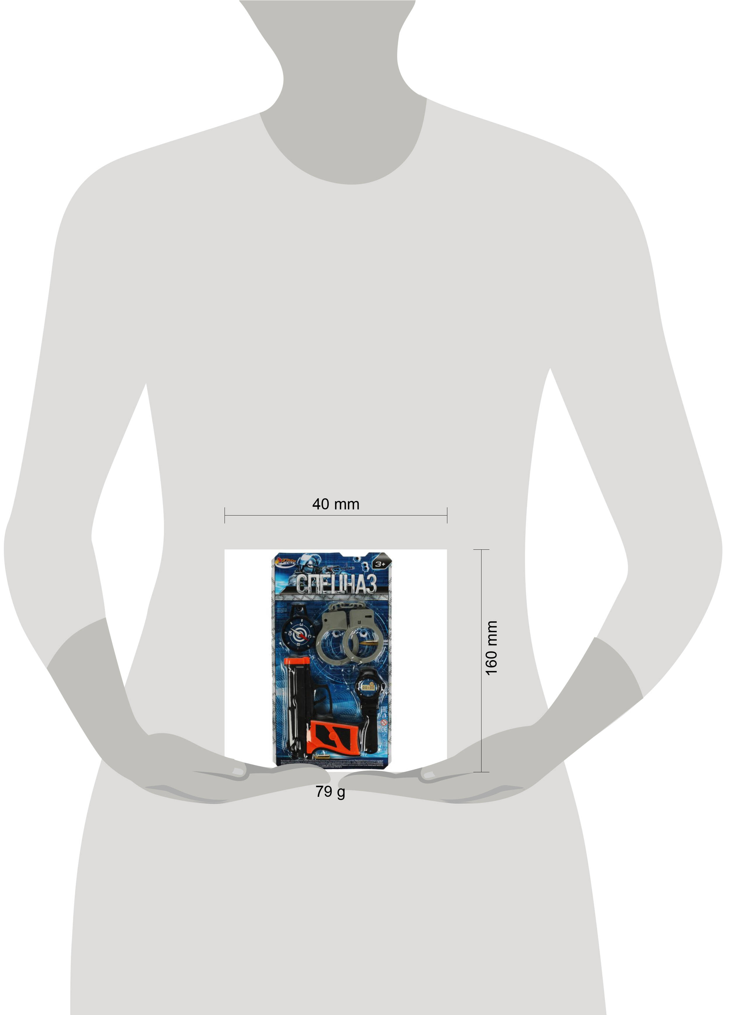 Игровой набор "Спецназ" ТМ "Играем вместе" непременно понравится юному герою: - реалистичный дизайн В комплекте: - пистолет - часы - компас - наручники С этим игровым оружием ваш ребёнок будет придумывать увлекательные спецзадания, защищать мир и стоять на страже порядка. С таким пистолетом маленький герой станет самым метким стрелком. Набор подойдёт для активных игр на воздухе и в помещении. Игры с набором ТМ "Играем вместе" помогут развить: - координацию движений - воображение - ловкость и меткость - внимание - моторику Размер упаковки: 18 х 15 х 3 см. Материал: пластмасса. Рекомендовано детям от 3-х лет.| Издательство | С-Маркет ООО |