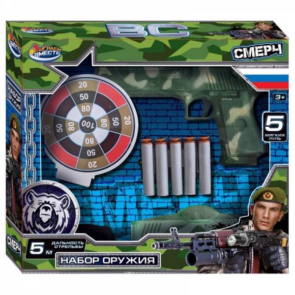 Аннотация: Набор оружия ВОЕННЫЙ пистолет с мягкими пулями, кор.28*25*6см ИГРАЕМ ВМЕСТЕ в кор.2*48шт