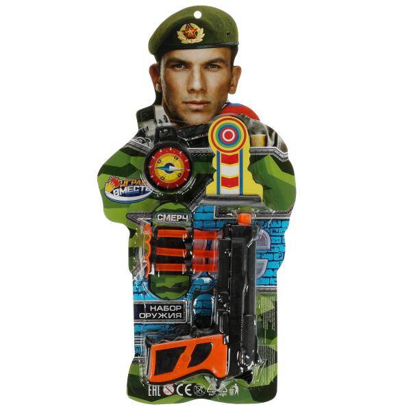 Аннотация: Набор оружия ВОЕННЫЙ пистолет с присосками, блист.20*32*3см ИГРАЕМ ВМЕСТЕ в кор.2*120шт