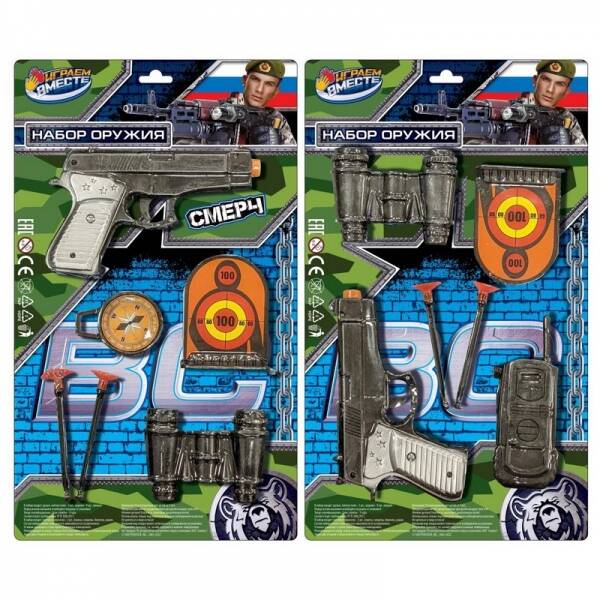 Аннотация: Набор оружия ВОЕННЫЙ пистолет с присосками, блист.21*36*2,5см ИГРАЕМ ВМЕСТЕ в кор.2*72шт