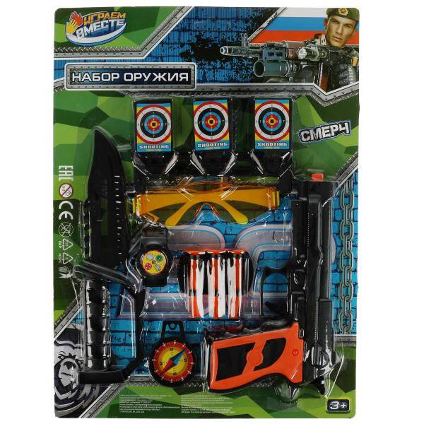 Аннотация: Набор оружия ВОЕННЫЙ пистолет с присосками, блист.29*38*3см ИГРАЕМ ВМЕСТЕ в кор.2*54шт