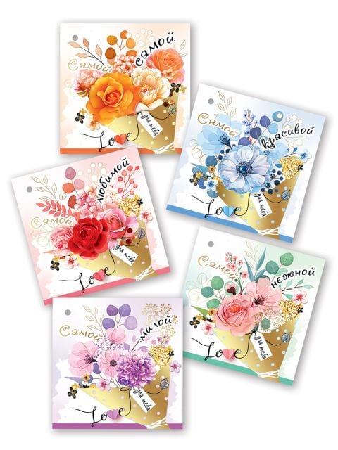 Набор открыток "Самой..." (5 видов по 10 штук)