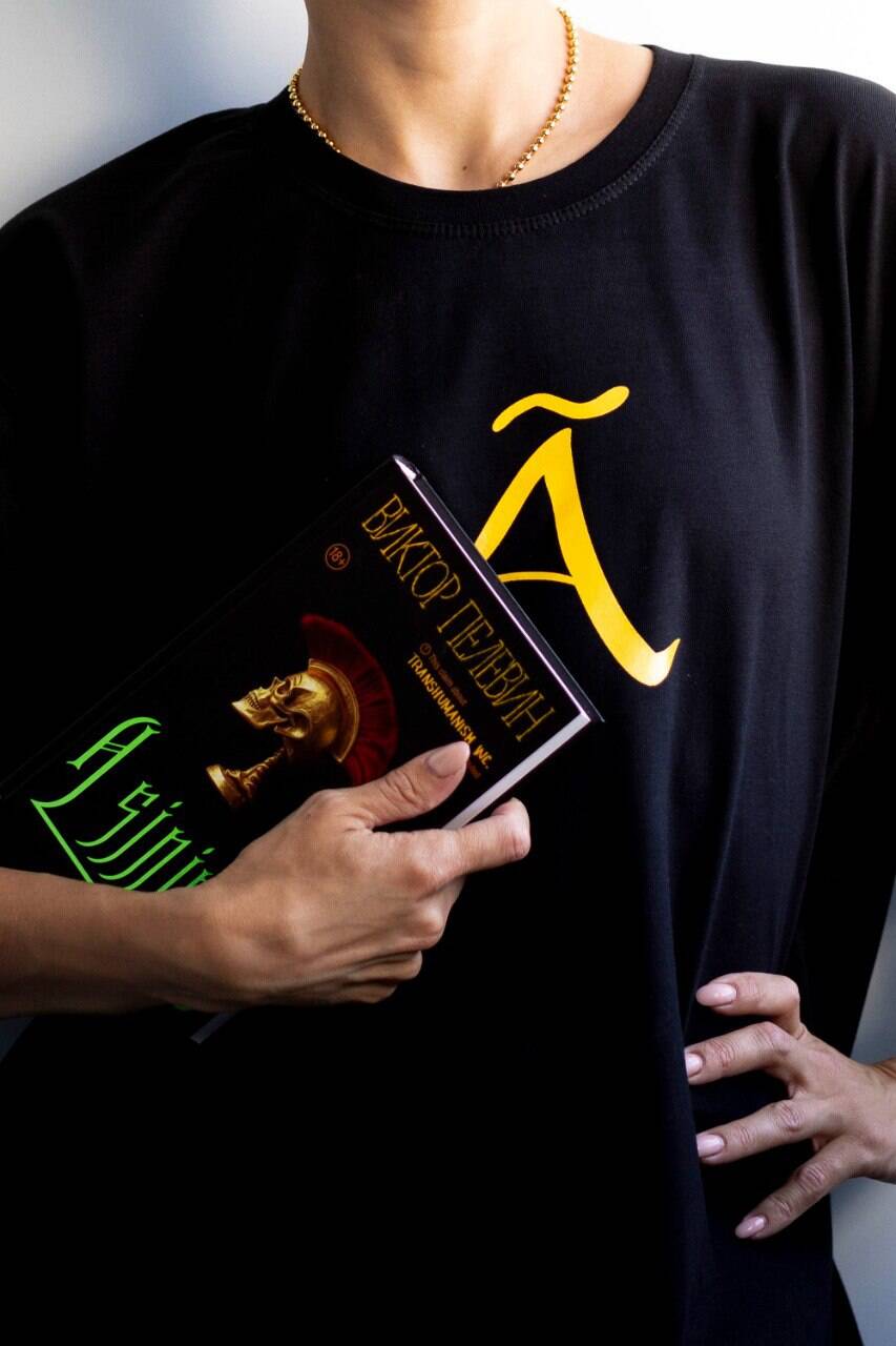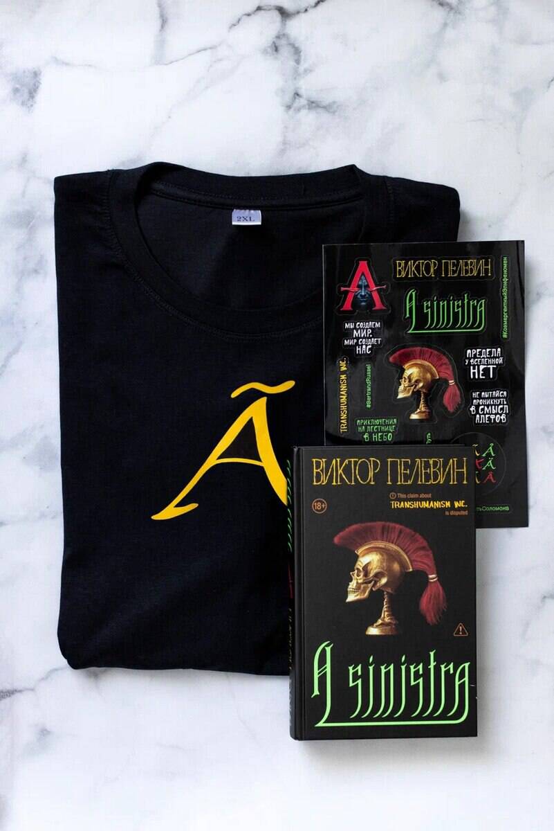 Набор подарочный: новая книга Пелевина "A Sinistra", футболка с буквой XL, стикерпак - всё в боксе