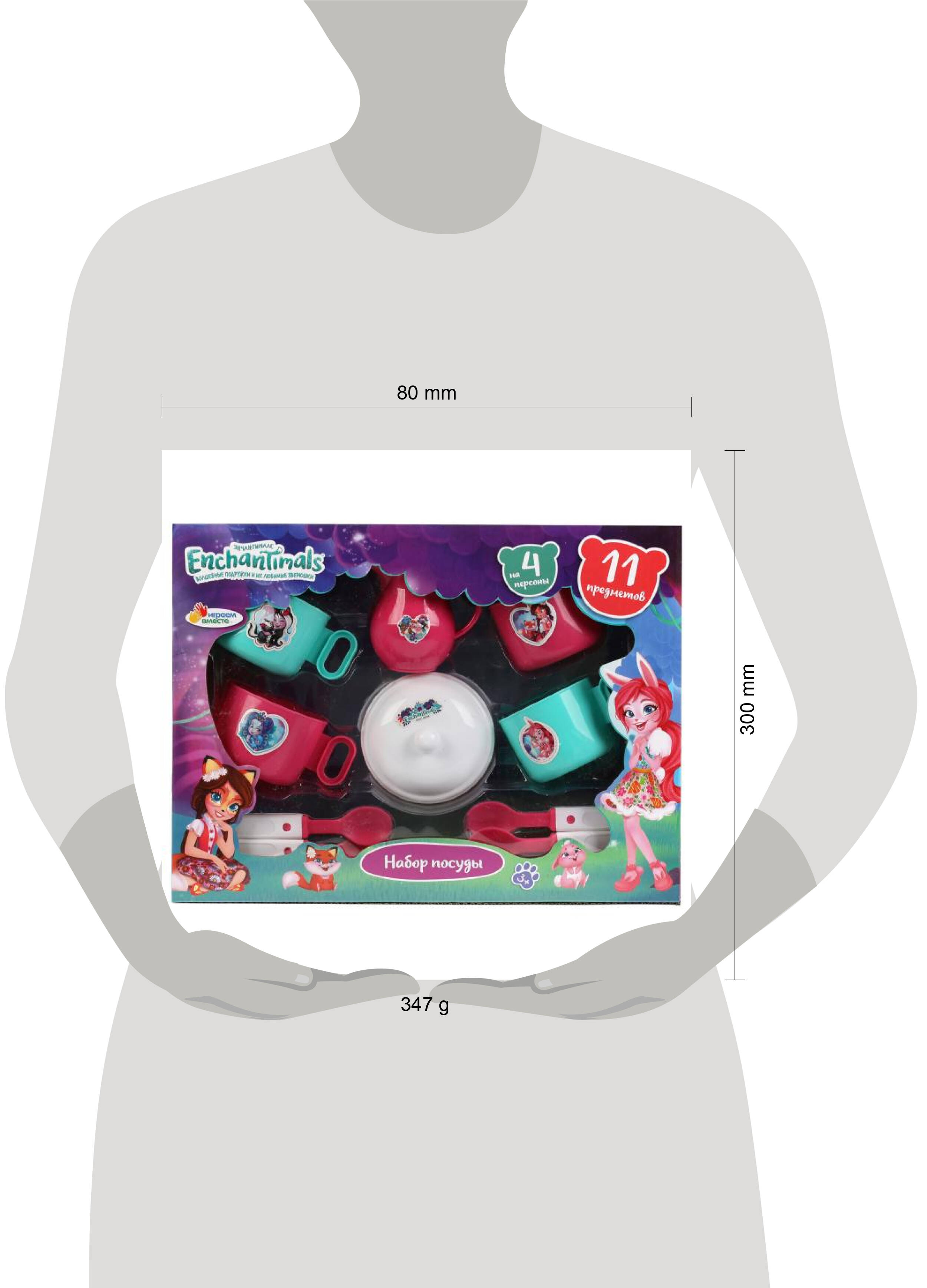 Набор посуды на 4 персоны "Enchantimals" ТМ "Играем вместе" непременно понравится маленьким поклонницам мультсериала про волшебных подружек и их питомцев. В комплекте: - 11 предметов - 4 чашки - 4 ложки и другие предметы Яркий набор посуды дополнит любую детскую кухню и вдохновит девочку на новые сюжеты для игр. Сюжетно-ролевые игры - важная часть развития ребёнка. Они помогают освоить новые социальные роли и стимулируют развитие воображения. С таким набором посуды ребёнок легко устроит чаепитие для любимых игрушек. Игра с набором ТМ "Играем вместе" развивает: - фантазию и воображение - моторику - координацию движений - образное мышление Размер упаковки: 30 x 22,5 x 8 см. Материал: пластмасса. Рекомендовано детям от 3-х лет.