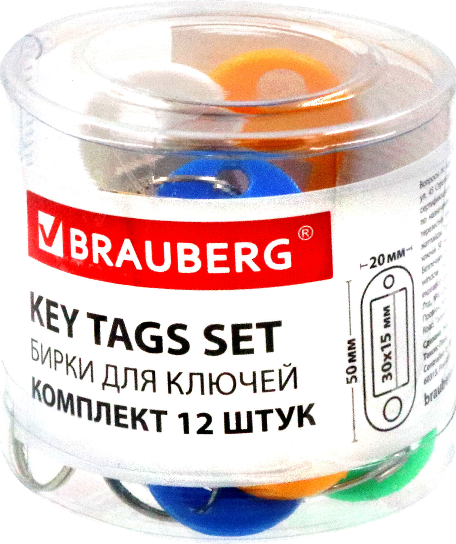 Набор разноцветных брелоков "Brauberg", 12 штук, длина 50 мм, инфо-окно 30x15 мм